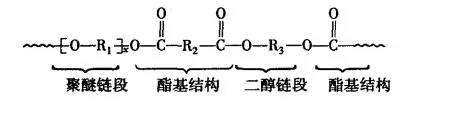 聚醚酯彈性纖維是由聚酯和聚醚共聚物通過熔融紡絲制得的彈性纖維,日本帝人公司于 1990 年首次生產(chǎn)。聚醚酯彈性纖維與聚氨酯彈性纖維結(jié)構(gòu)類似,也具有“區(qū)段”結(jié)構(gòu)特征?!败洝辨湺沃饕蔷勖焰湺?,柔軟性好,鏈較長(zhǎng),容易伸長(zhǎng)變形;“硬”鏈段則是聚酯鏈段,相對(duì)較僵硬,易于結(jié)晶,鏈較短,在纖維受力變形時(shí)起節(jié)點(diǎn)作用,賦予彈性回復(fù)性能,并決定纖維的強(qiáng)力和耐熱性。